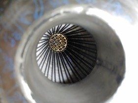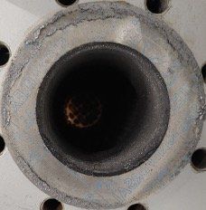 Vor der Reinigung: Wärmeübertrager Zulauf, Stahl u. Edelstahl mit fester, kristalliner Magnetitschicht